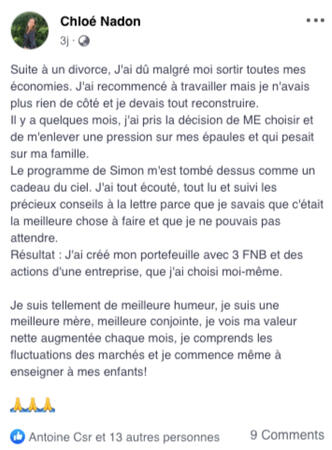 Le programme de Simon est simple, clair et efficace. Je n'avais ni gros budget ni expérience, mais j'ai appris à investir. C'est vraiment accessible à tous !"